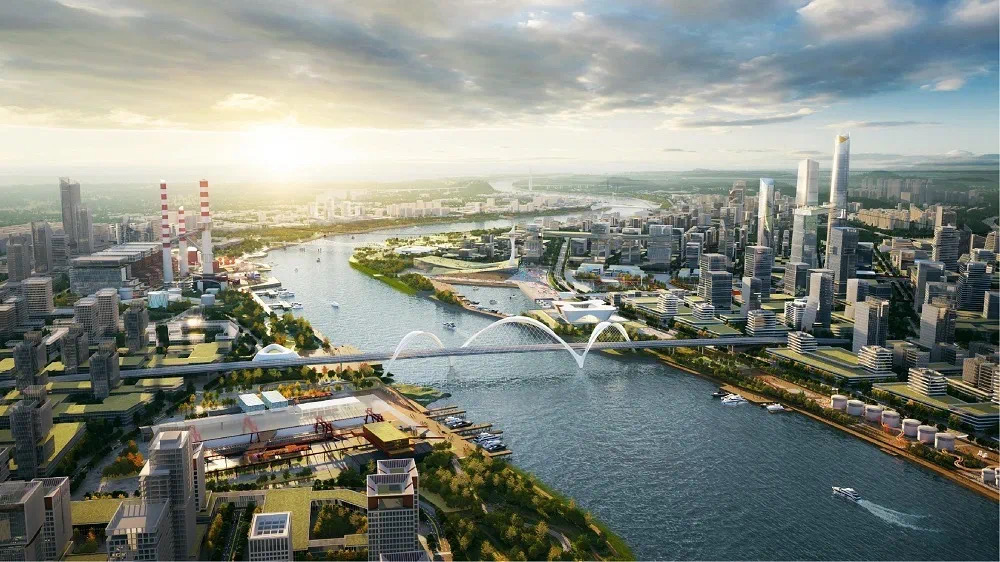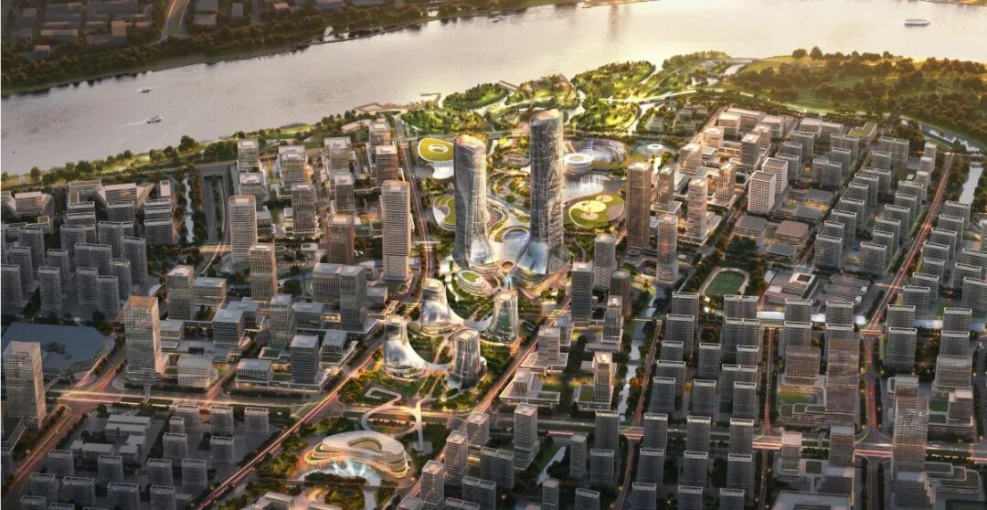 甬江科创区北仑片区总部基地效果图。