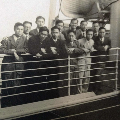 1951年,戴传曾在回国的轮船上(前排左三)。