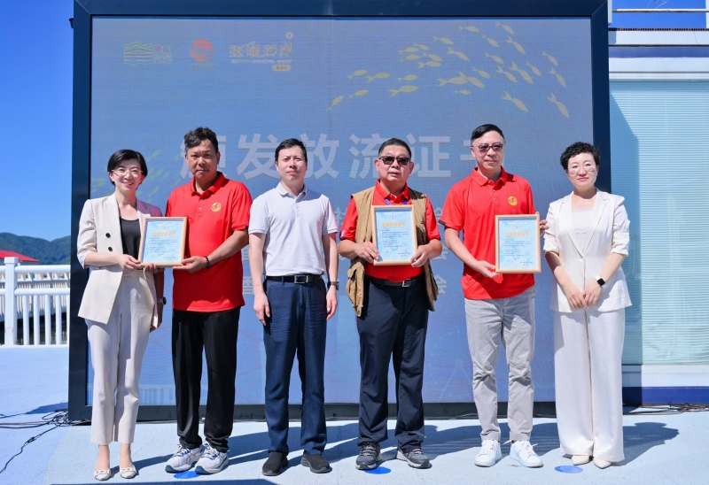 放流环节结束后,现场举行了一场简洁而庄重的授牌及证书颁发仪式。香港嘉宾代表向象山港放流平台敬赠了“团结业界、共展新机”牌匾。与会领导向香港大埔社团联谊会、香港渔村代表联会、香港宁波象山联谊会的代表颁发了增殖放流证书,以表彰和感谢各方在海洋资源可持续发展和象港交流合作方面所作出的积极贡献。每一份证书不仅是对公益行动的认可,更是对象港两地深化合作的激励。