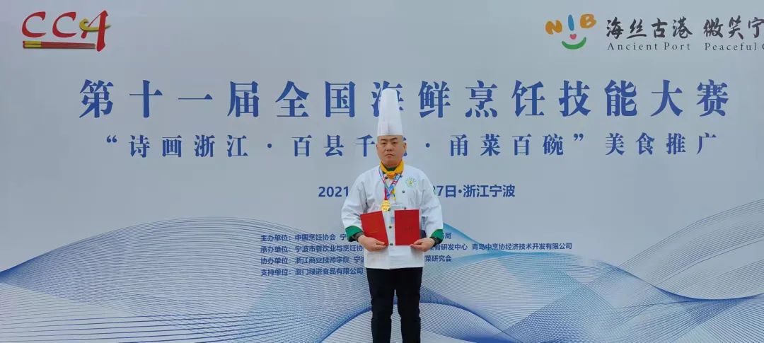 来自我县恒太宴会中心厨师长童海斌参与大赛,以“峡山皮苔小望潮”、“酱烤生态大黄鱼”两道菜获得大赛组委会的一致认可,喜获特金奖,并获得“宁波十大美食制作大师”荣誉称号。