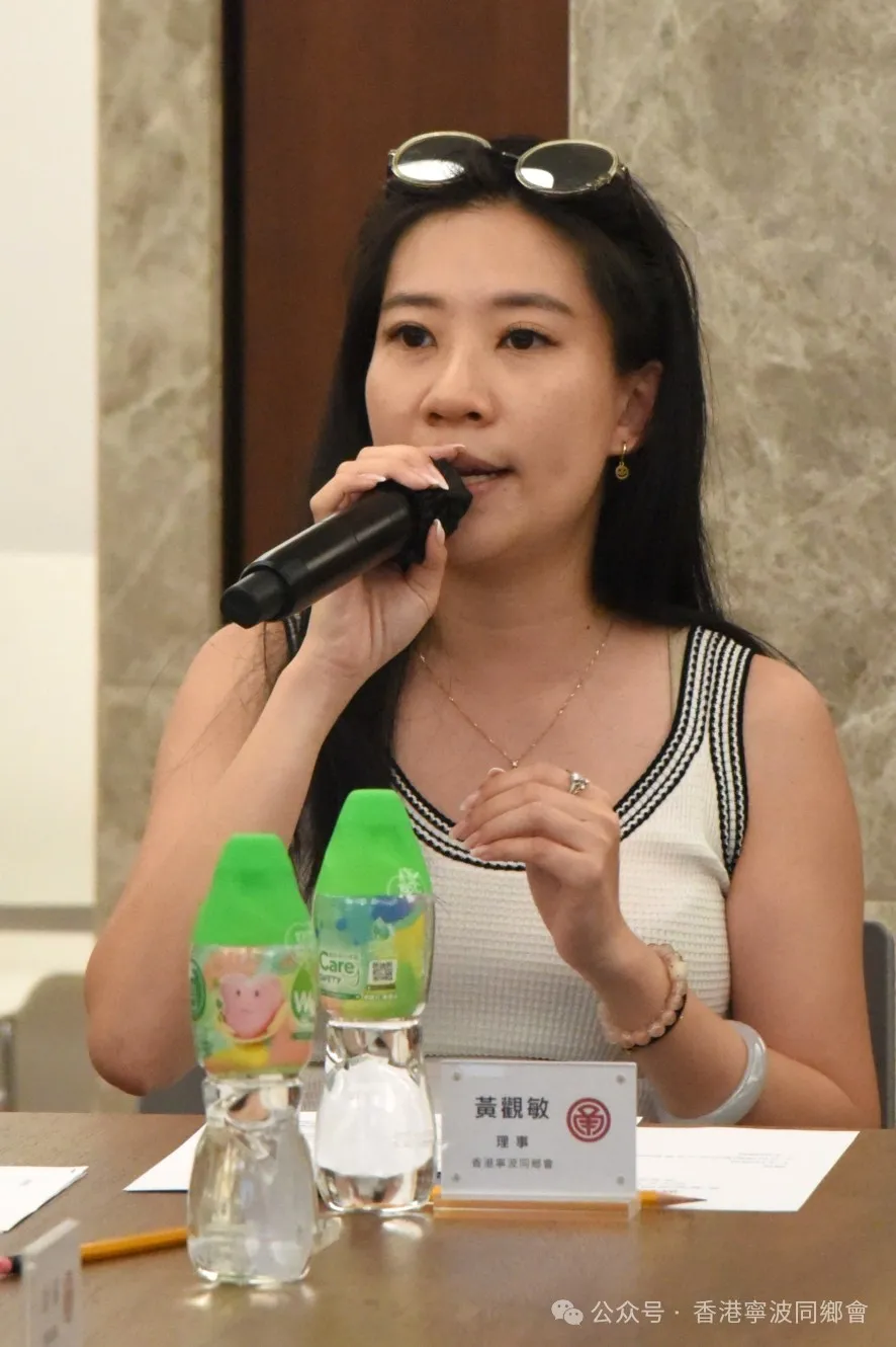 本會理事黃觀敏表示:在加拿大出生及長大,外公外婆是寧波人,母親在上海出生,母親與我都未曾到過寧波。機緣巧合下,加入了浙聯會青委會,當時仍然對祖國沒有太深認識,後來參加各類活動:國情班、青年會、一帶一路考察團,逐漸加深對祖國的認識,見證到中國的發展。最近帶同母親去過寧波,母親對寧波發展迅速,感到很感動。自己作為寧波籍的年青一代,認為舉辦更多內地交流團,可以加深年青一代對祖國的認識,亦可舉辦內地暑期實習團,讓港青深入認識祖國,開拓創業的機遇。