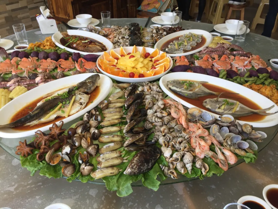 近年来,象山茅洋人民创意十足地把各式海鲜做成大拼盘,鲳鱼、青口、小白虾、血蛤、香螺、梭子蟹……琳琅满目,也因为海鲜铺满整张桌,所以这顿大餐有个特别的名字——茅洋无边际海鲜大餐。